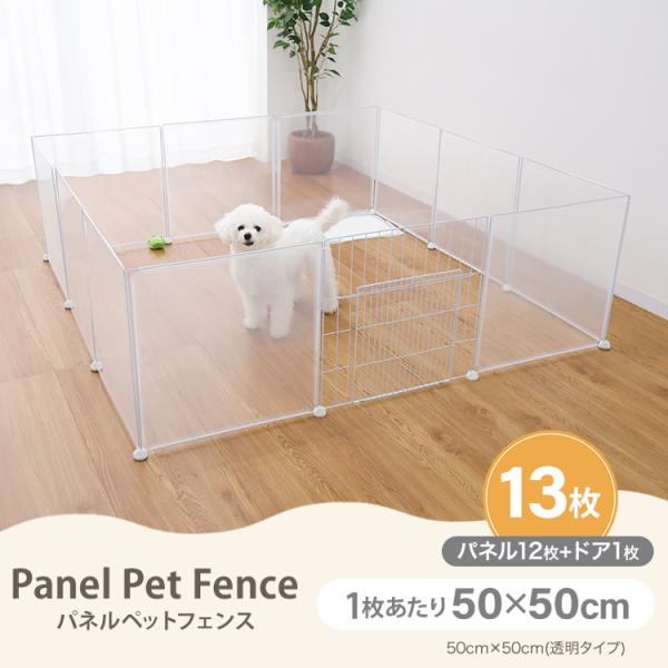 ペットフェンス 犬用 ペットサークル ドア付き 13枚 ペットケージフェンス ケージ 置くだけ 半透明 軽量 コンパクト 室内 屋外 多頭飼い ペット用 小型犬 中型犬