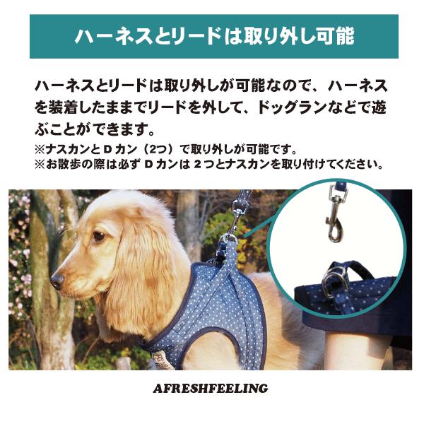 ドット柄デニムテンダーハーネスリード Sサイズ ハーネスリード 胴輪 犬用 犬 ドッグ ペット ベスト アフレッシュフィーリング メール便1点のみOK