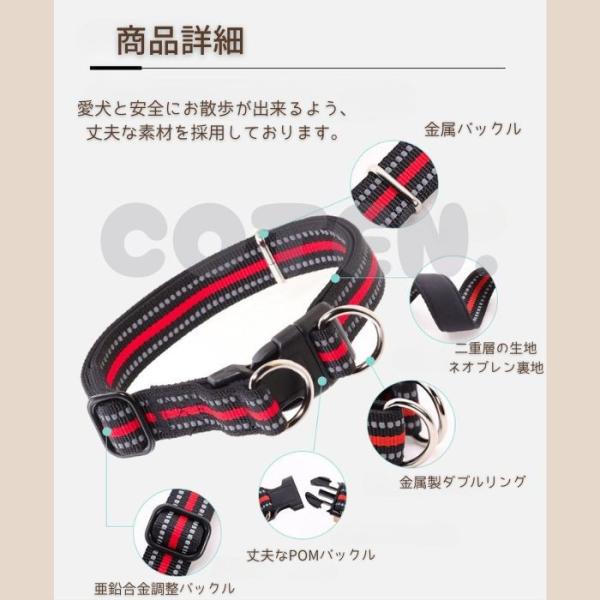 犬 首輪 ダブルリング カラー 軽い 丈夫 中型犬 大型犬 お散歩 安全 安心 夜間 光る 反射 可愛い おしゃれ ペット 犬用 COTEN