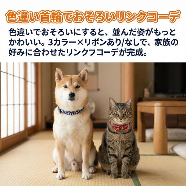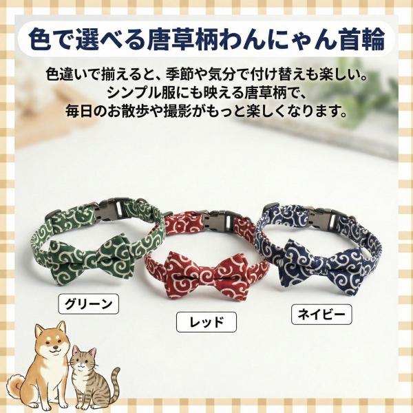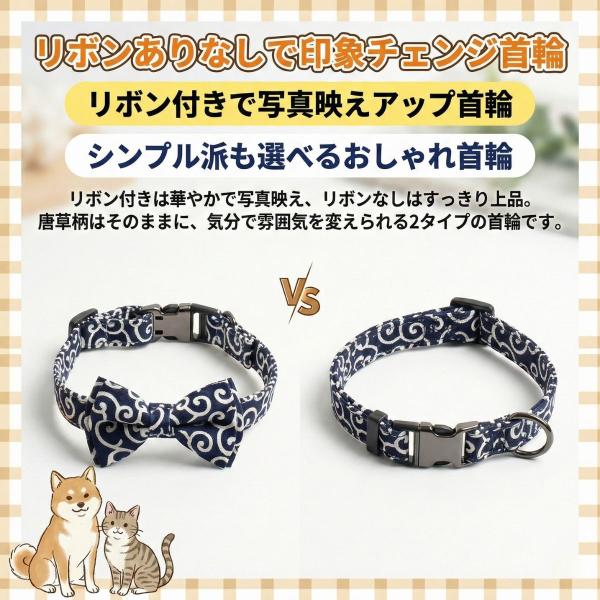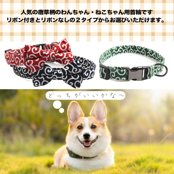 犬 猫 くびわ 首輪 おしゃれ 可愛い 唐草 和柄 リボン セット 選べる 柔らかい 付け心地 散歩に ペットグッズ ドッグ キャット S/M/L