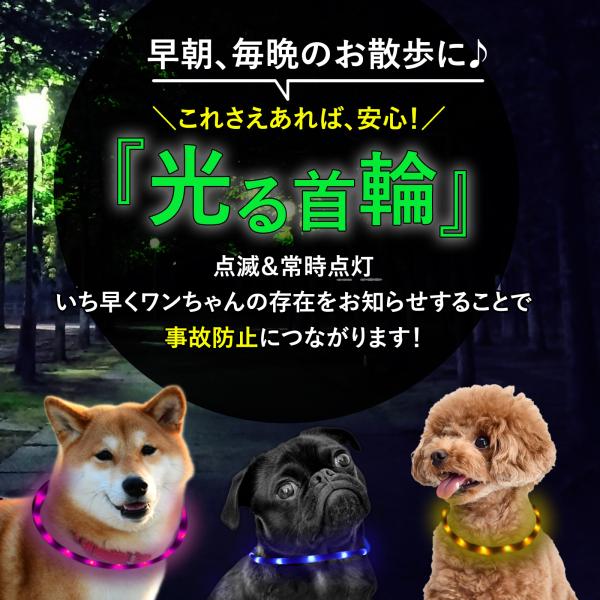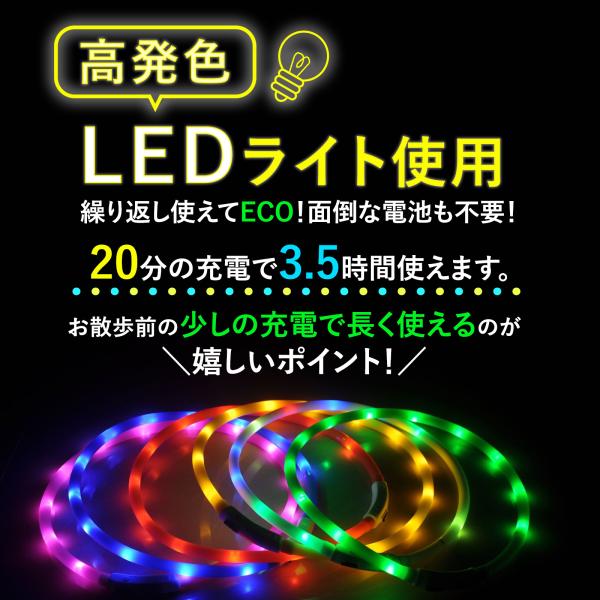 光る首輪 犬 LED 充電式 犬用 光る USB レインボー ライト 小型犬 大型犬 散歩 安全 ペット