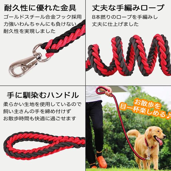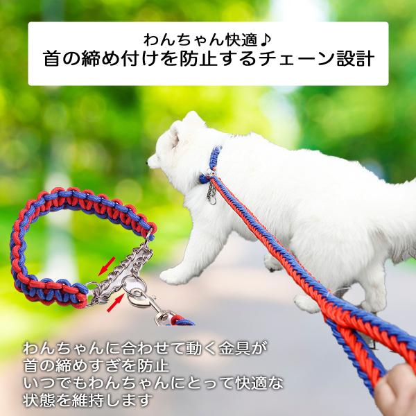犬 リード 首輪 セット 引っ張り癖 しつけ用 丈夫な編込みロープ 中型犬 大型犬 用 おしゃれ トレーニング 散歩 ハーフチョークタイプ