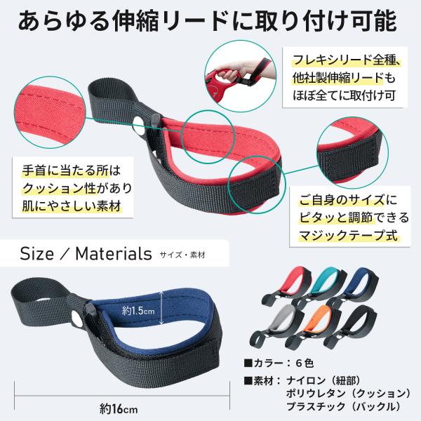 伸縮リード用ストラップ リード用ハンドル 一時係留可能 すっぽ抜け防止 反射する 両手フリー 手袋可 大きめのハンドル 犬用品 ハンズフリー