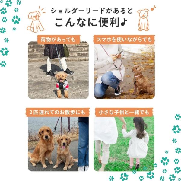 犬 多機能 ショルダーリード 肩掛けリード 2頭引き リード リフレクター 反射機能 ダブルリード 多頭飼い 小型犬 中型犬 大型犬