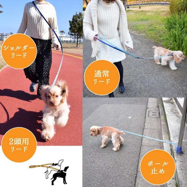 手ぶらでお散歩♪ ハンズフリーマルチリード(ショルダーリード) 普通リードとして、ポール止めとして、2頭用リードとしても使える4Way!