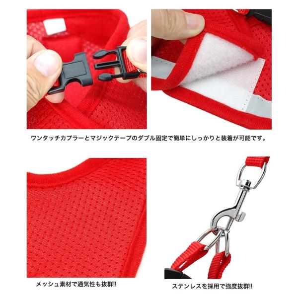 犬 ハーネス リード付 ペット 服 ウェアハーネス 胴輪 キャット ドッグ メッシュ