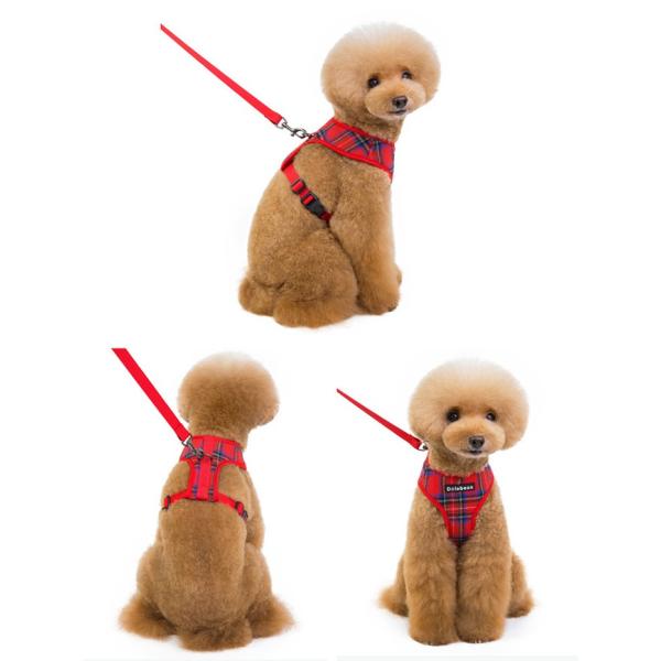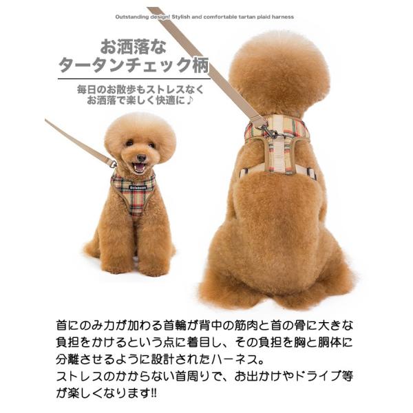犬 ハーネス リード付 ペット 服 タータンチェック ウェアハーネス 胴輪 キャット ドッグ メッシュ チェック