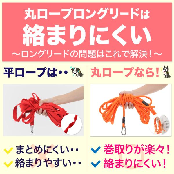 【大好評3万本突破】ロングリード 15m まとめやすい 丸ロープ カラフル 丈夫 外れにくい ナスカン 絡まない 大型犬 中型犬
