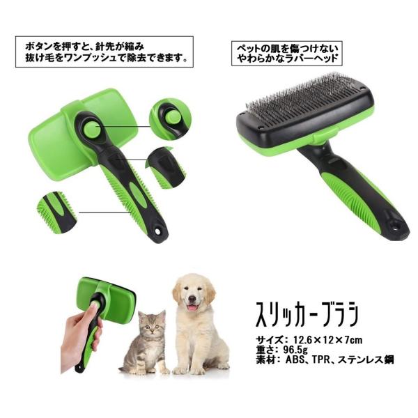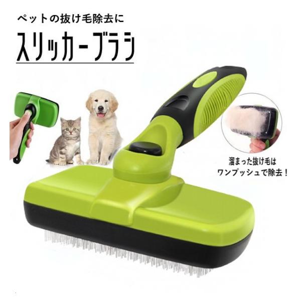 【並行輸入品】ワンプッシュで抜け毛除去 ペット スリッカーブラシ グリーン 毛取り 犬 猫 セルフ セルフクリーニング ブラシ __
