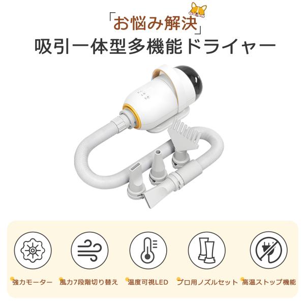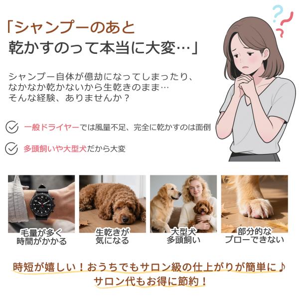 ペットドライヤー 犬 プロ 犬用ドライヤー 業務用 猫 トリミング 大風量 家庭用 ブロワー 風量/温度調整 4ノズル付 小型犬 大型犬 1年間保証 快速乾燥 爆買