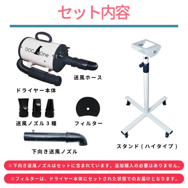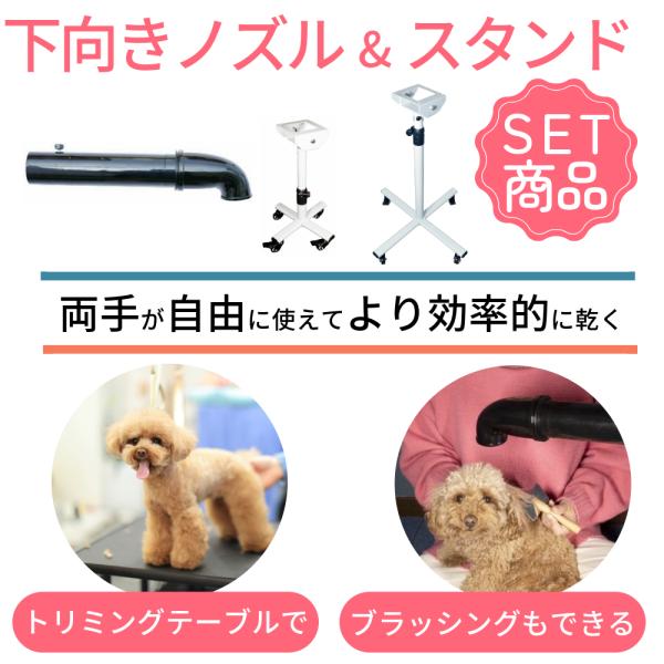 【5/1 再入荷予定】DogOne製 超強風 速乾 ペット用ドライヤー ブロワー 温風も出る 大風量 ハイスタンド・下向き送風ノズルセット (ホワイト)