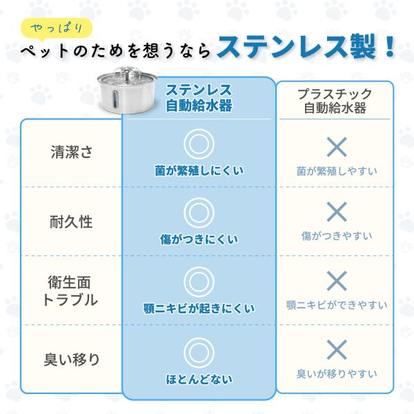 ステンレス ペット用給水器 3.2L 大容量 静音 USB給電 猫 犬 ペット 自動給水器 水飲み器 循環 浄水 残量窓 活性炭フィルター 安全 健康 衛生 2025新仕様PWD-SL+