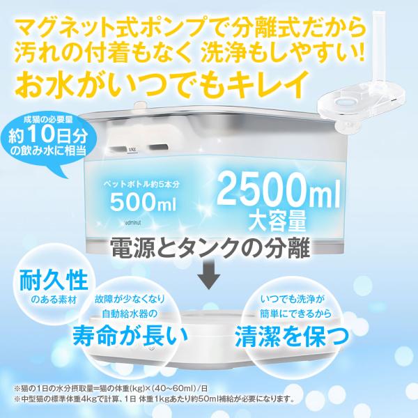 訳あり品 ペット自動給水器 猫 犬 磁力給水 循環式給水器 猫犬兼用 水飲み器 給水器 2.5L大容量 フィルター付き MAXWIN G-PET05