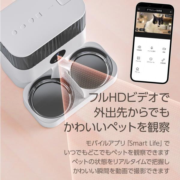 猫 自動給餌器 2匹 カメラ付き多頭飼い 犬 Wi-Fi接続 ペットフィーダー 大容量5L ドライフード 餌やり器 ステンレストレイ PSE認証アダプタ PL保険加入商品