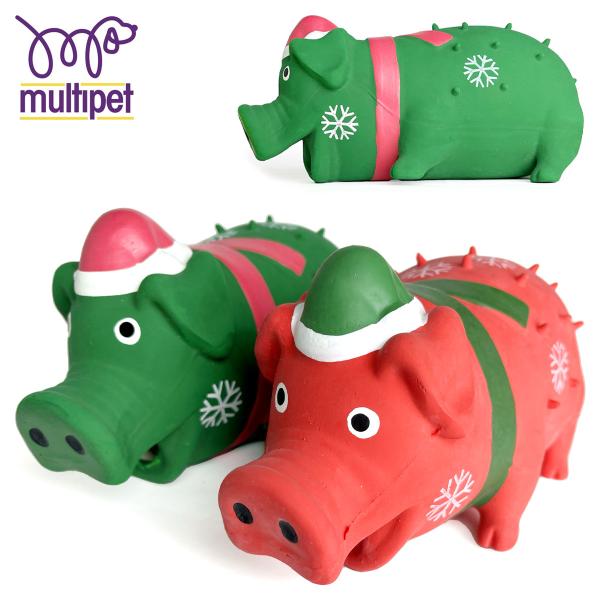 MULTIPET クリスマス グロブレッツ 中型犬 大型犬 ラテックス クリスマス ホリデー 豚 スクイーカー 鳴り笛 マルチペット 海外ブランド 輸入品 oyom