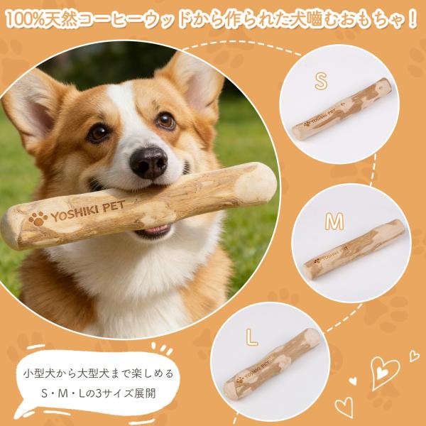 【良木工房YOSHIKI】犬用おもちゃ コーヒーの木 Mサイズ 天然木 無添加 噛むおもちゃ デンタルトイ 中型犬用 かみかみ 安心 ナチュラル YK-POM