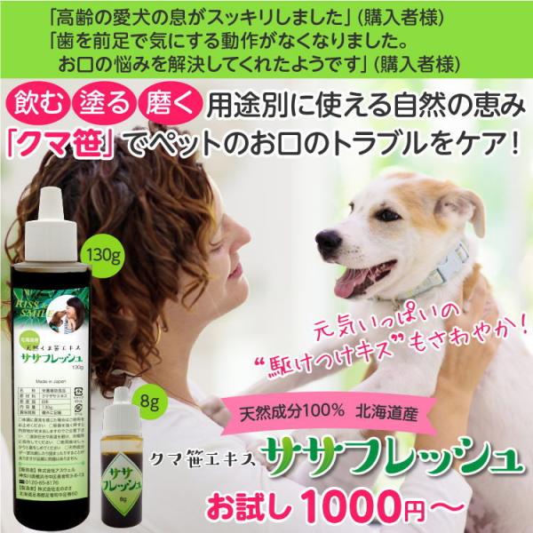 ペット用 クマ笹エキス 口臭対策 歯磨き にも使える 北海道産 天然素材100% お口のトラブル お口のケア ササフレッシュ レギュラーサイズ 130g