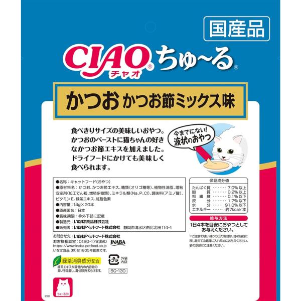 いなば チャオ ちゅ〜る かつお かつお節ミックス味 14g×20本 猫用 おやつ ちゅーる 2個までメール便OK ご家族様16個まで [M便 1/2]