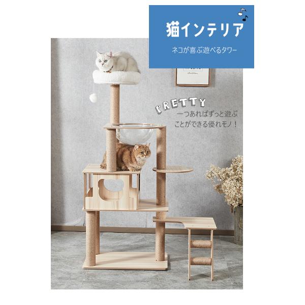 キャットタワー 木製 宇宙船 大型 スリム 猫タワー 据え置き 爪とぎ タワー 多頭飼い 安定 高さ165cm 【DH-28-8】【e-do】