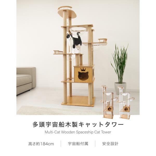 キャットタワー 木製 宇宙船 据え置き 大型猫用 キャットウォーク 猫タワー 爪とぎ スリム 滑り止め シニア おしゃれ 多頭飼い 隠れ家 省スペース 麻