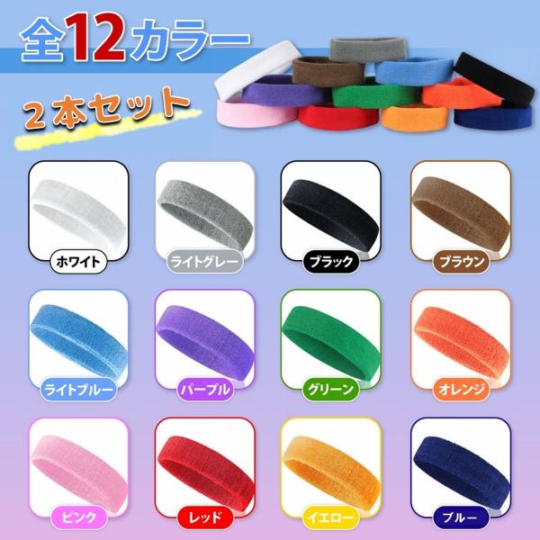 ヘッドバンド ヘアバンド タオル タオル地 汗止め 無地 細め 厚手 2個 2本 ヘアゴム リストバンド スポーツ バンダナ パイル 爆買