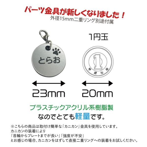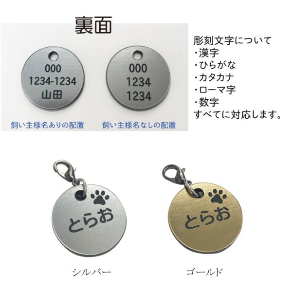 迷子札 軽量 プレート 電話番号 小型犬 猫 名前 アクリル製 シルバー ゴールド サークル