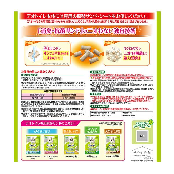 ケース 国産 デオトイレ 消臭・抗菌サンド 4L × 4袋 猫砂 ネコ砂 鉱物タイプ 1袋約2ヵ月 消臭 抗菌 固まらない システムトイレ用 ユニ・チャーム