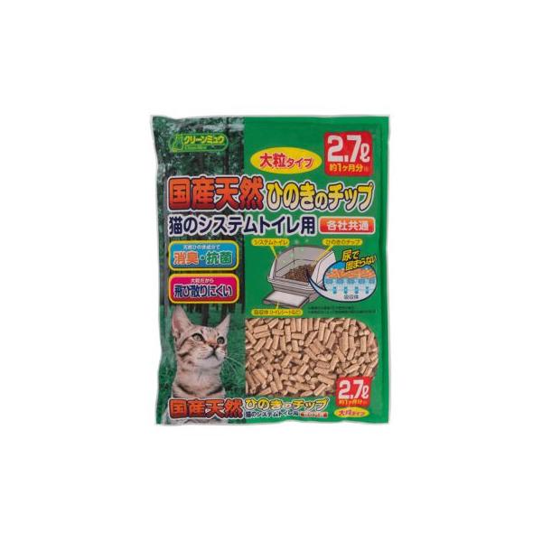シーズイシハラ クリーンミュウ 国産天然ひのきのチップ 大粒タイプ 2.7L 【猫用 猫砂 トイレタリー スノコ付トイレ(システムトイレ)用】