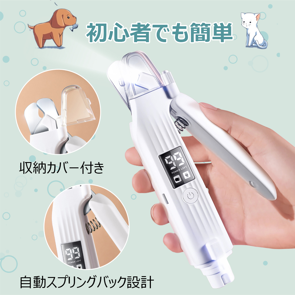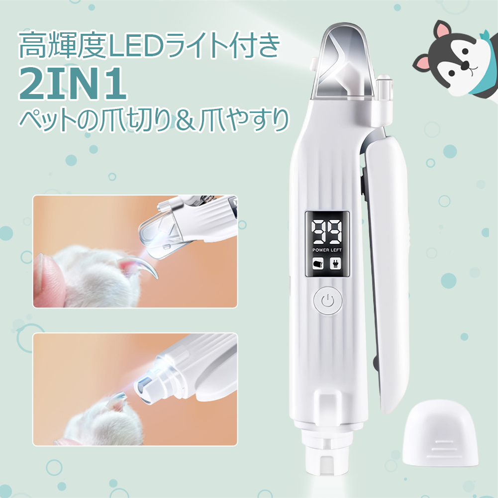 ペット用爪切り 電動 LEDライト付き 爪やすり 電動爪トリマー ペット 犬爪切り 犬爪やすり 猫爪切り 猫爪やすり 爪とぎ 犬爪削り 犬深爪 爪切り 猫用 犬用