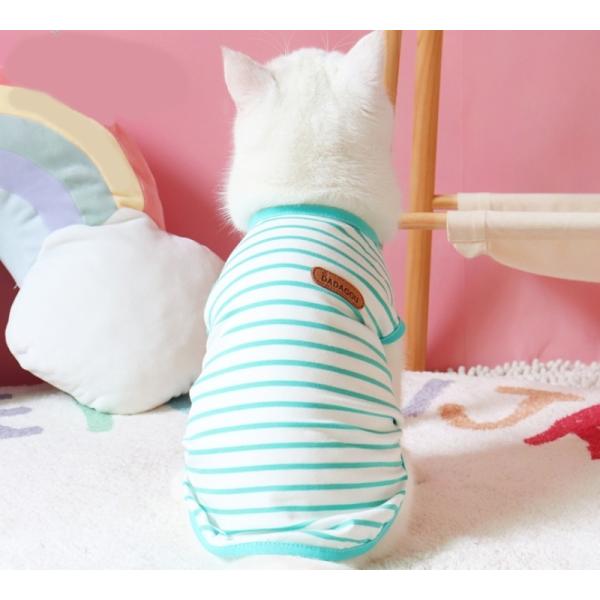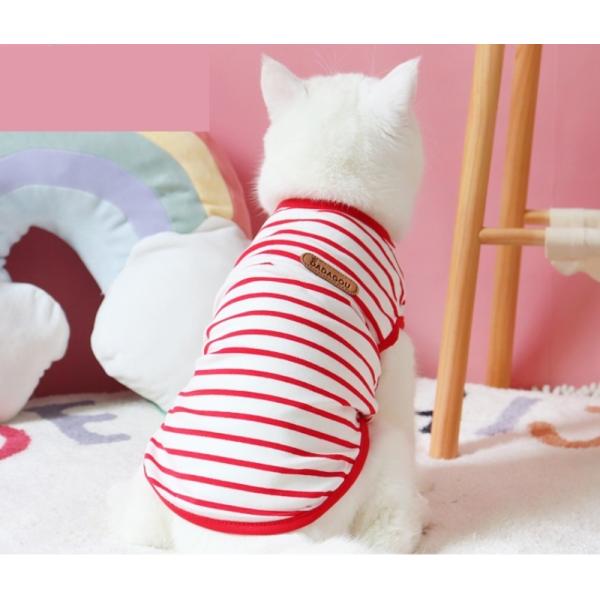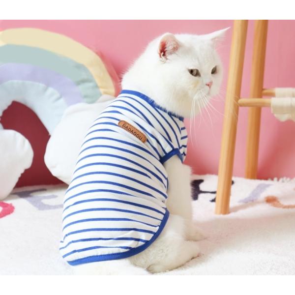 猫 服 猫服 ボーダー 春夏 袖なし タンクトップ おしゃれ コットン 綿 Tシャツ 涼しい かわいい 安い キャットウェア ノースリーブ クール やわらか ペット服