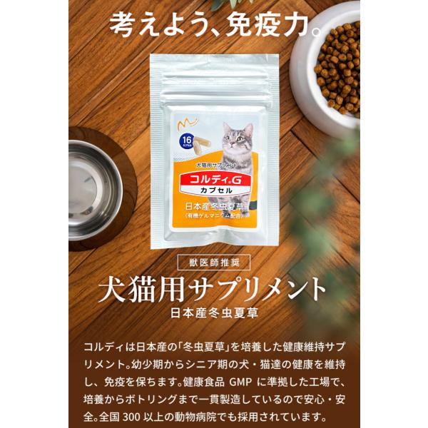 猫 サプリ ネコ サプリメント 猫用 ペット 免疫力 保つ アップ 健康維持 胃腸 老描 シニア 冬虫夏草 菌活 お試し <コルディカプセル> 爆買