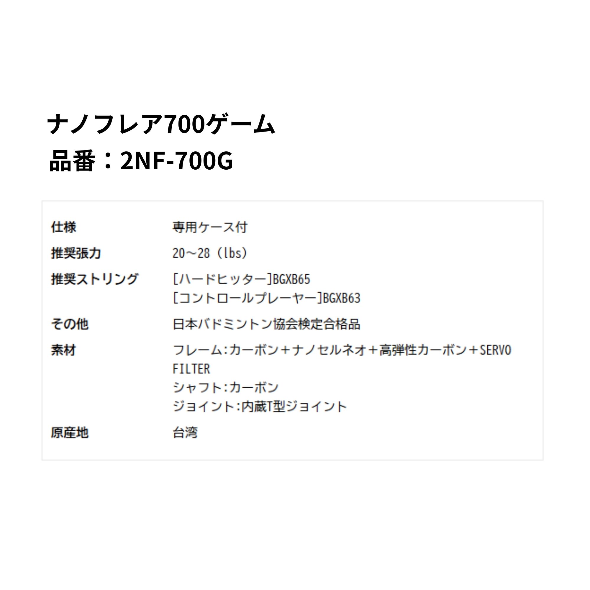 【最短出荷】【限定商品】【ガット代・張り代無料】ヨネックス YONEX バドミントンラケット ナノフレア700ゲーム 2NF-700G バドミントン