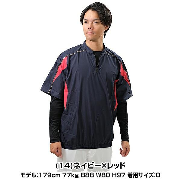 ミズノ 野球 ハーフジップジャケット 大人 半袖 撥水 Vジャン シャカシャカ ウインドシャツ ウィンドジャケット トレーニングジャケット ピステ 一般用 12JE9V34