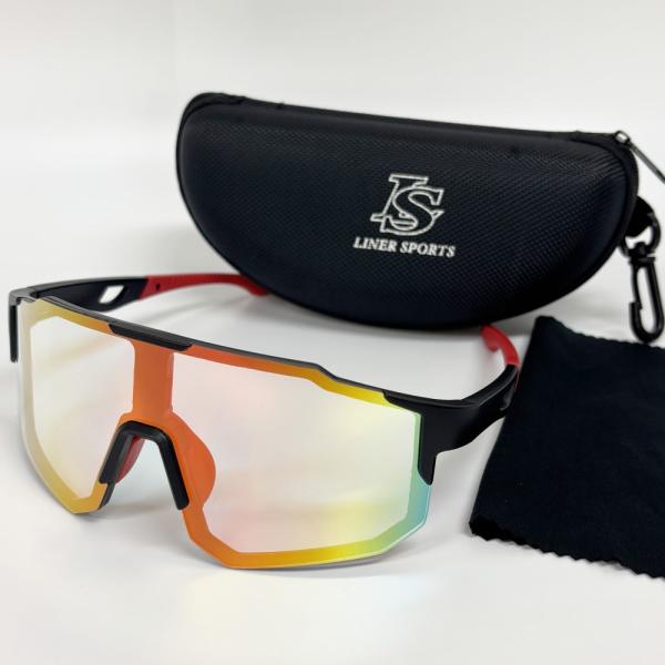スポーツサングラス ケース付 調光レンズ ミラーレンズ 調光サングラス 1年保証 ライナースポーツオリジナル LSALI047-RED
