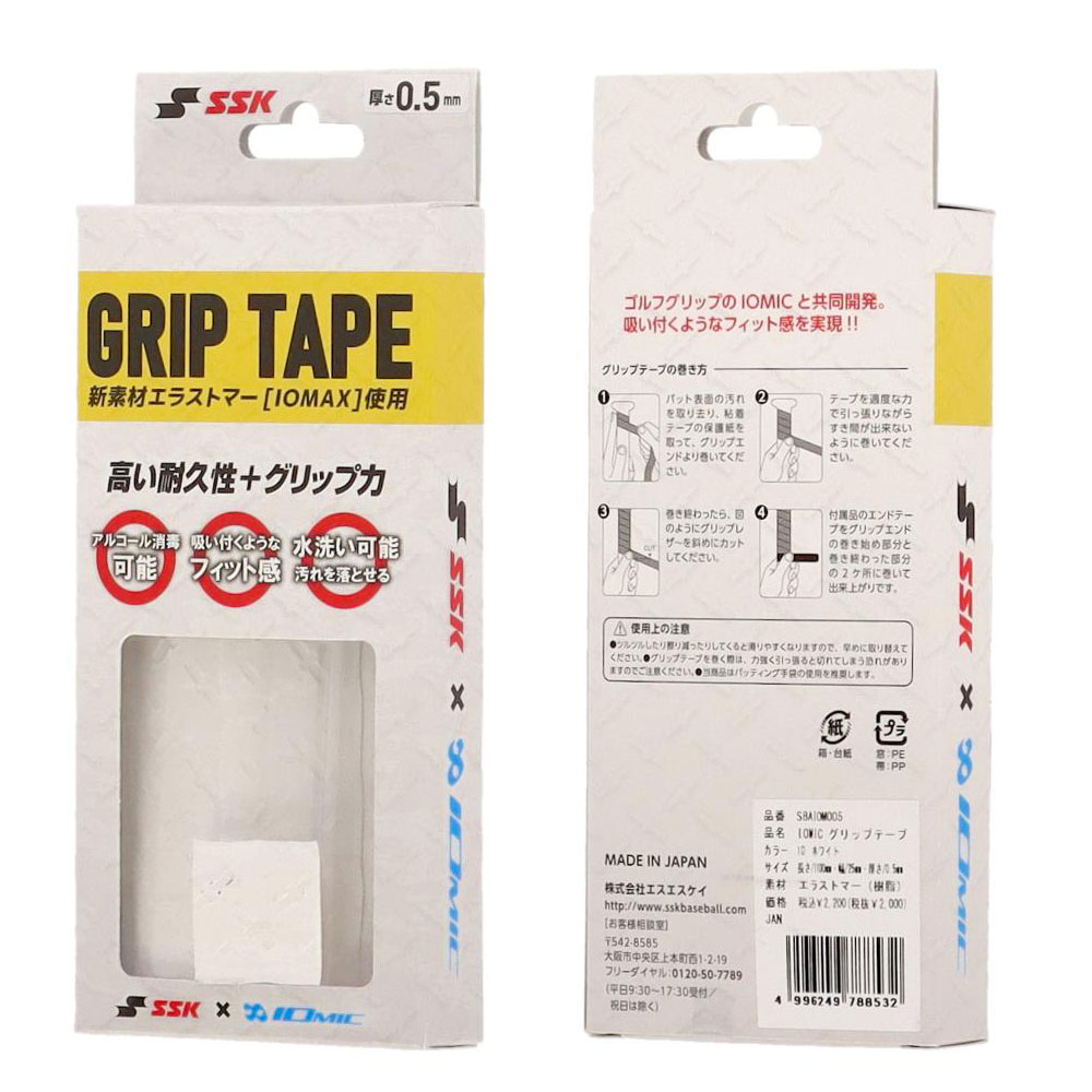 SSK 野球 バット グリップテープ バット用 日本製 高耐久 滑り止め 薄手 衝撃吸収 少年野球 ジュニア 一般 大人 巻き替え エスエスケイ イオミック sbaiom005