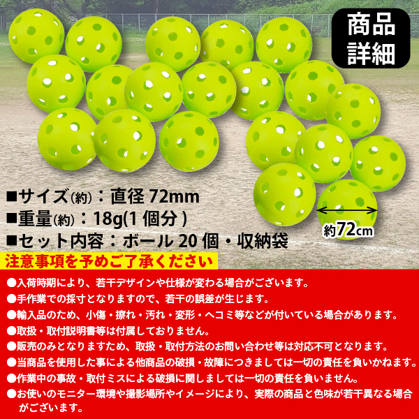バッティング 練習用ボール 野球 ボール 【 20個入 】練習 バッティング練習用 バッティング練習 打撃練習 練習用 練習器具 穴あき 穴あきボール セット