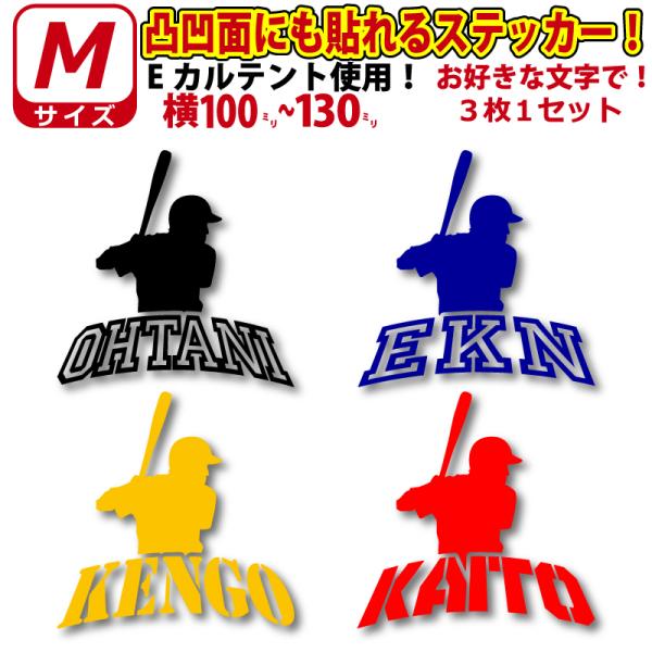 凸凹面なクーラーボックスにも貼れる!かっこいい! 野球 バッター お好きな文字でロゴ風 ステッカー シール Mサイズ3枚選べる 水筒 クーラーボックスなどへ