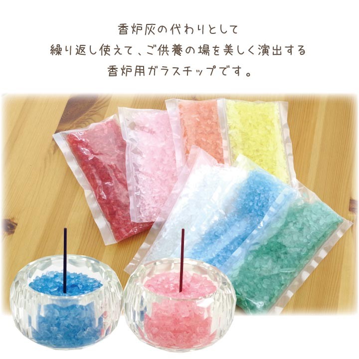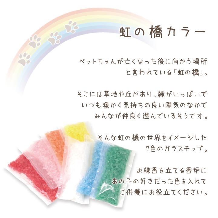 ペット仏具 香炉用ガラスチップ 100g 全8色 虹 香炉 香炉石 香炉灰 線香立て レッド ピンク オレンジ イエロー ホワイト ブルー グリーン ネコポス送料無料