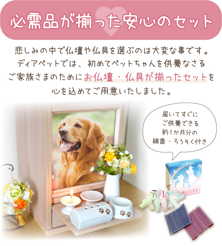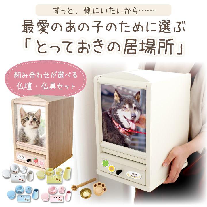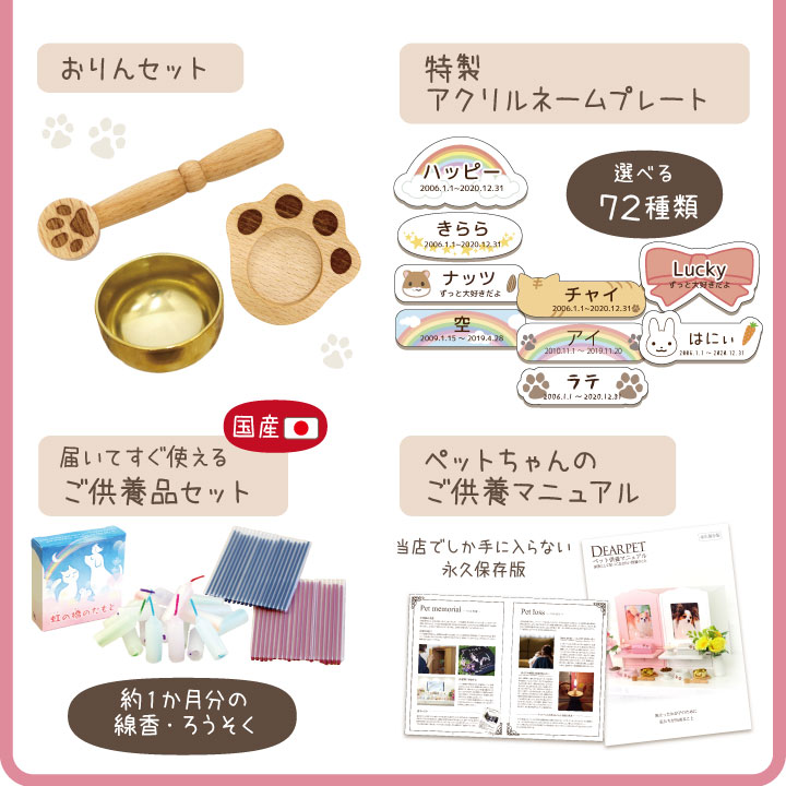 ペット仏壇・仏具セット メモリアルボックス & 足あと 仏具 & おりん 肉球 & ネームプレート 17点 6寸 5寸 4寸 ネット限定 かわいい おしゃれ pset