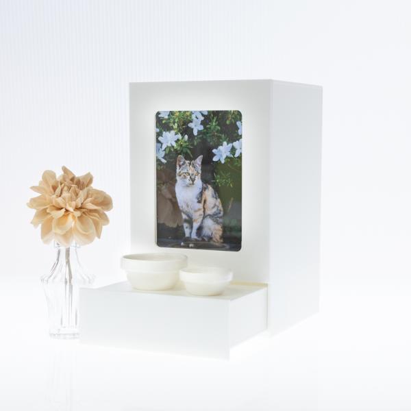 ペット仏壇 Sサイズ メモリアルボックス 仏具セット ホワイト ブラック 手元供養 コンパクト ミニ仏壇 軽量 アクリル シンプル 黒 白 骨壺 写真立 モダン 日本製