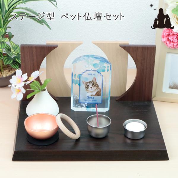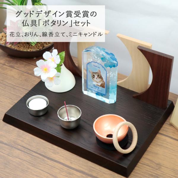 ペット 仏壇 ステージ おしゃれなステージ型 手元供養台+仏具ポタリンセット 30×23cm 天然木 シンプル モダン おしゃれ ミニ コンパクト