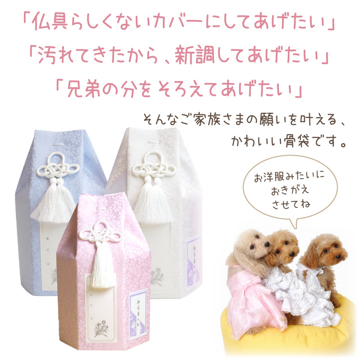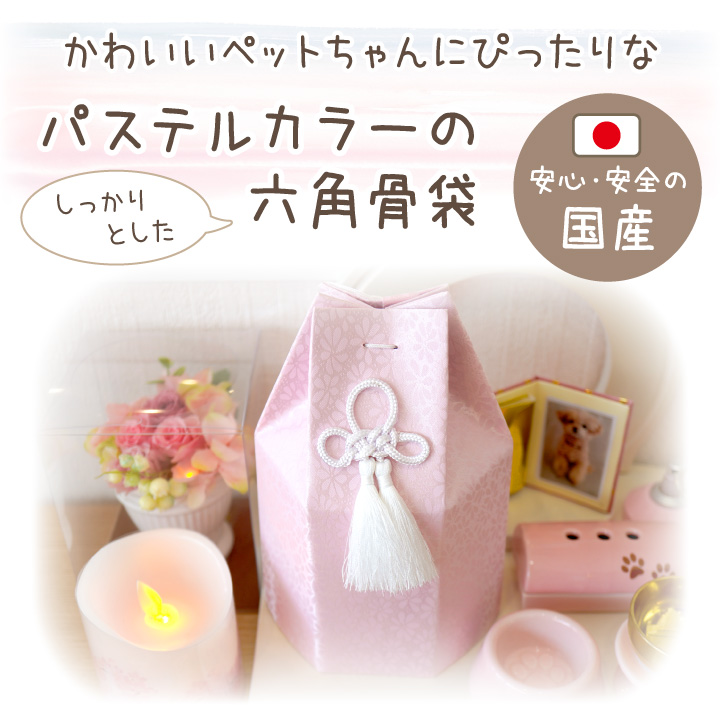 ペット 骨壷骨袋セット パステル 3寸 セット (直径9cm) 骨壷 用 六角 ピンク ブルー ホワイト 骨壺カバー 骨覆 覆袋 かわいい 花柄 超小型犬 うさぎ
