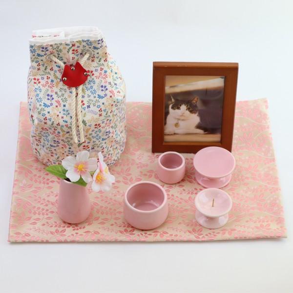 ペット仏具 敷物 防炎マット ボタニカル柄 16号(38×26cm)日本製 敷物 モダン ピンク ホワイト