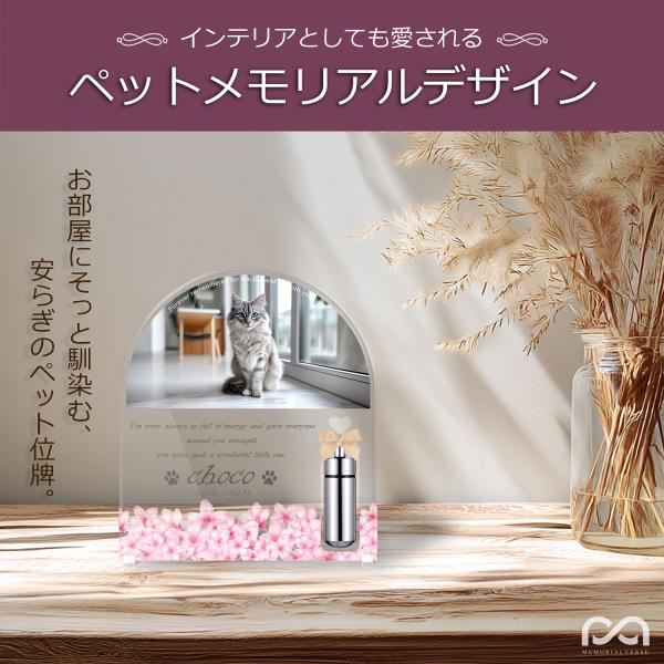 【ペットメモリアル】ペット位牌 犬 猫 名入れ おしゃれアクリルプレート オーダーメイド デザイナー仕上げ 日本製 メモリアルカプセル付 (サクラ, クリア)