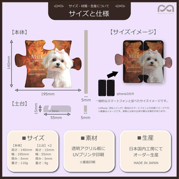 【メモリアルバース|パズルピース位牌】ペット位牌 ペットメモリアル 犬 猫 遺影 おしゃれアクリルプレート オーダーメイド デザイナー仕上げ 日本製 サクラ