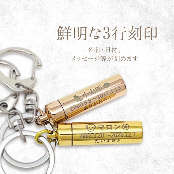 遺骨キーホルダー ペット 名入れ 3行刻印 ステンレス ガラス管入 遺骨カプセル 全4色 選べるキーホルダー Oリング付 犬 遺骨入れ 猫 ミニ 骨壺 遺骨キーホルダー