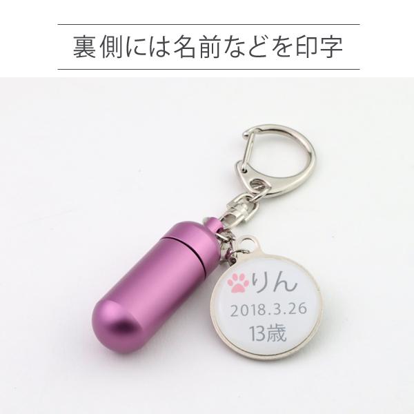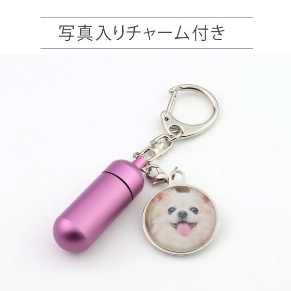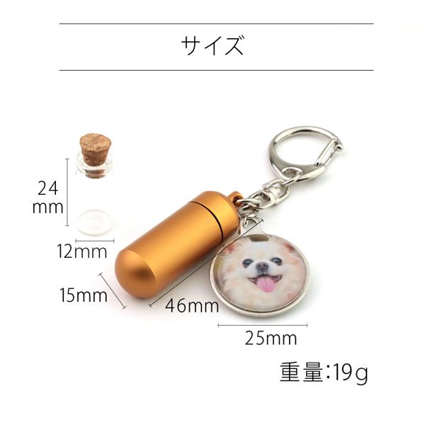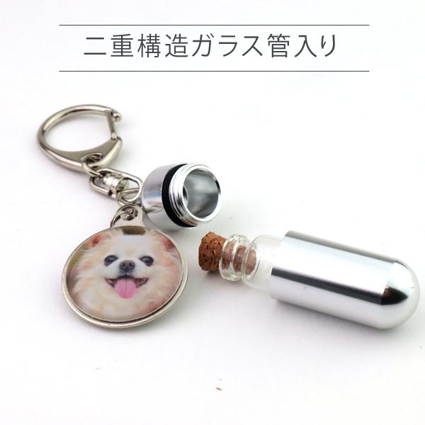 ペット 遺骨キーホルダー ガラス管内蔵 遺骨カプセル 二重構造 アルミ軽量 写真入り 名札チャーム付き 遺骨入れ 分骨 犬 猫