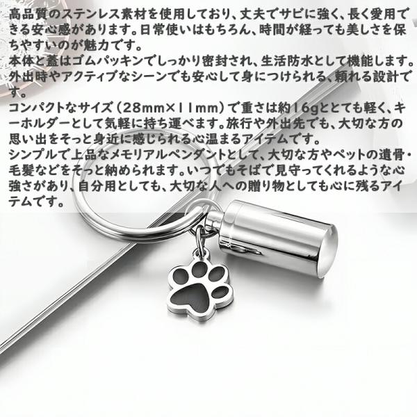 遺骨キーホルダー カプセル 完全防水型 高い密封性と耐久性 カプセル アクセサリー 犬 猫 骨入れ 手元供養