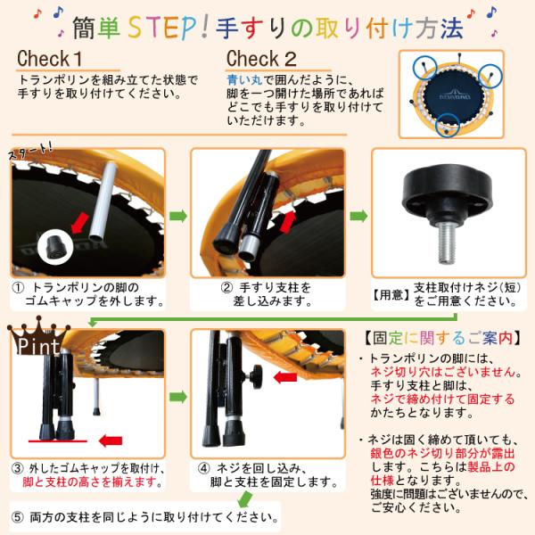 TVに紹介されました! 6本脚トランポリン 専用 手すり 単体 取外し可能 送料無料