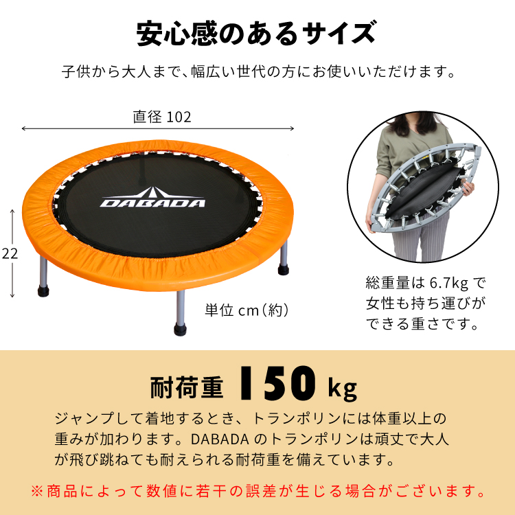 トランポリン 102cm マット付き 耐荷重150kg 予備バネ3本付 トランポリン フロアマット ダイエット 室内用 家庭用 子供